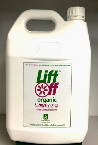 Late Friday afternoon he drops by and buys a 1 litre bottle of LiftOff Organic Stain and Odour Remover (Concentrate) and 750 ml spray bottle.